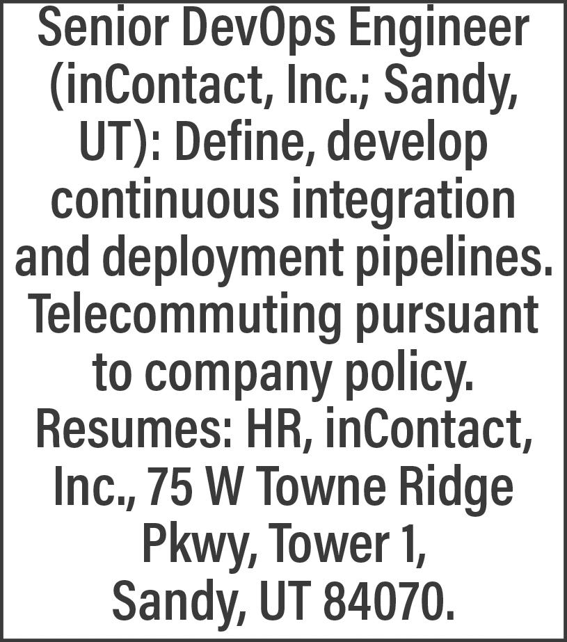 40 | AUGUST 31, 2023 | CITY WEEKLY • BACKSTOP | | CITYWEEKLY.NET | 801-979-7200 Amazing Windows and Doors 5 windows $2995.00 Woods Cross: 596 W 1500 S (Woods Cross) | Airport Location: 1977 W. North Temple 801-683-3647 • WWW.UTAHDOGPARK.COM • Overnight dog boarding • Cageless dog daycare • Dog washing stations Your dog’s home away from home 10 FREE GALLONS OF ALKALINE WATER TO EVERY NEW CUSTOMER! ALKALINE & HYDROGEN WATER 3678 S. 900 E. | (801) 904-2042 | waterwellnesscenter.com SO FRESH AND SO CLEAN 801-972-2525 3211 S Highland Drive MILLCREEK UT 3676 S Redwood Road WVC UT 3421 Airport Road OGDEN UT Senior Software Engineer (inContact, Inc.; Sandy, UT): Work as a member of an agile team to enhance and improve software. Telecommuting pursuant to company policy. Resumes: HR, inContact, Inc., 75 West Towne Ridge Pkwy, Tower 1, Sandy, UT, 84070 IT ZONE MANAGER. Gerflor USA, Inc. is seeking an IT Zone Manager to lead the implmentation of IT dvlopmnt & maintenance prjects w/in the assigned IT zone. Supervise 3 emplyes. Reqs: Master’s dgre in Comp Eng, IT Cmmunications Ntwrks, Comp Sci, or a rltd field, or the frgn dgre eqvlnt & 3 yrs of rlvnt exp. Wrk loc: 5445 W. Harold Gatty Dr., Salt Lake City, UT 84116. Up to 25% trvl across the U.S.; May wrk remotely. Email resumes for IT Zone Manager to julia.oquinn@gerflorusa.com, referencing IT Zone Manager in the subject line. salt lake CITY WEEKLY Rewind years of Volume 2: 1985 to 1986 PAGE 18 & 19 OF THIS ISSUE save NOVEMBER 17 date the view results @ cityweekly.net/bestofutah