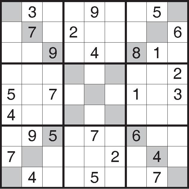 SUDOKU X Complete the grid so that each row, column, diagonal and 3x3 square contain all of the numbers 1 to 9. No math is involved. The grid has numbers, but nothing has to add up to anything else. Solve the puzzle with reasoning and logic. Solving time is typically 10 to 30 minutes, depending on your skill and experience.