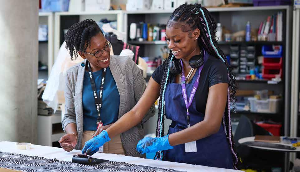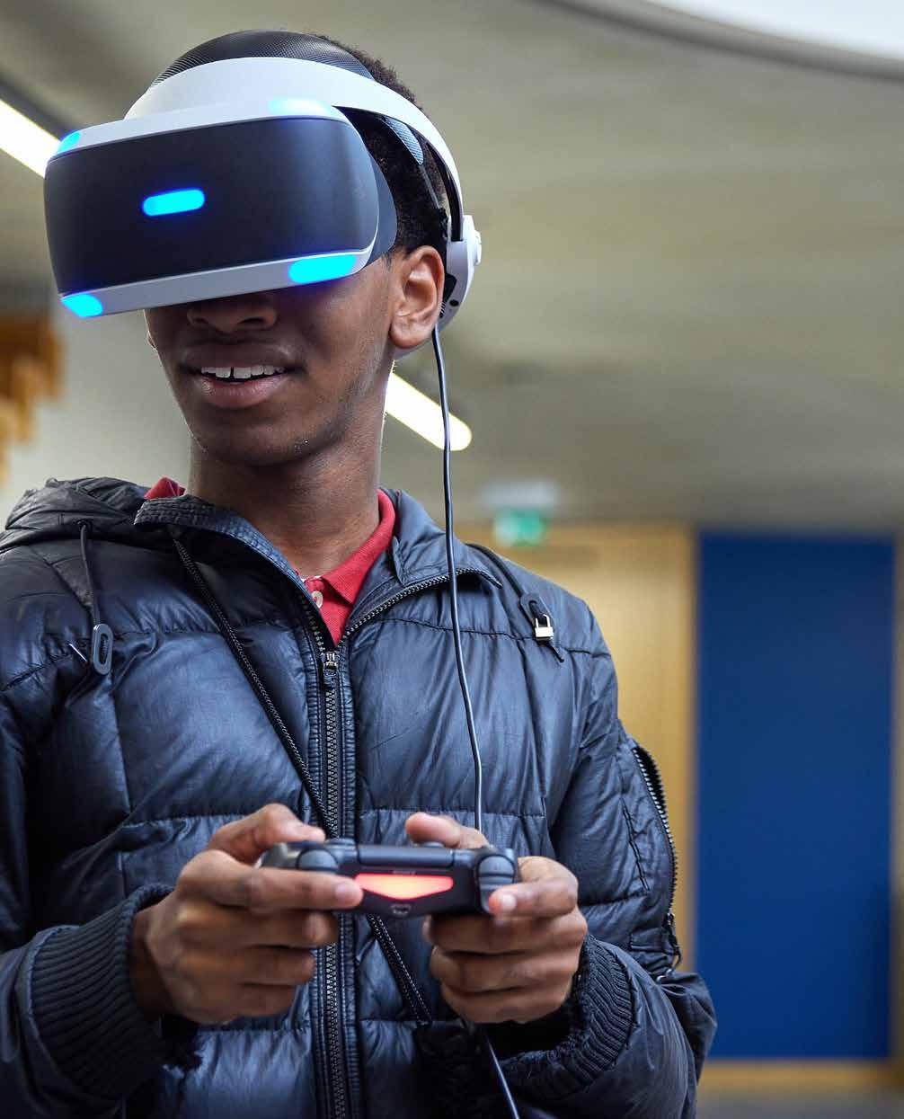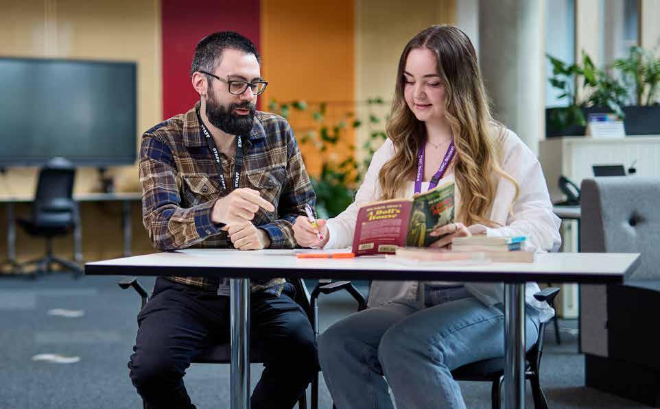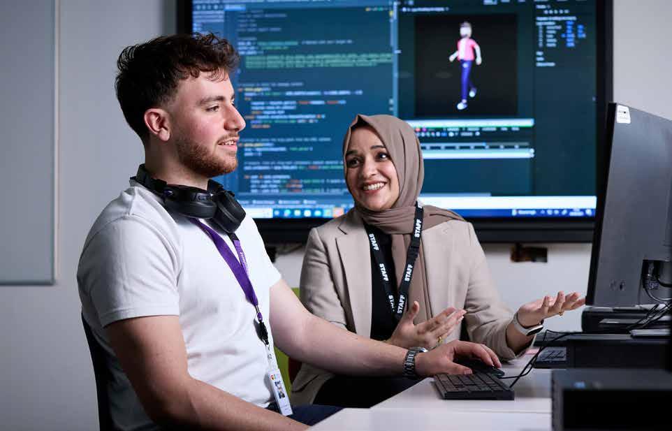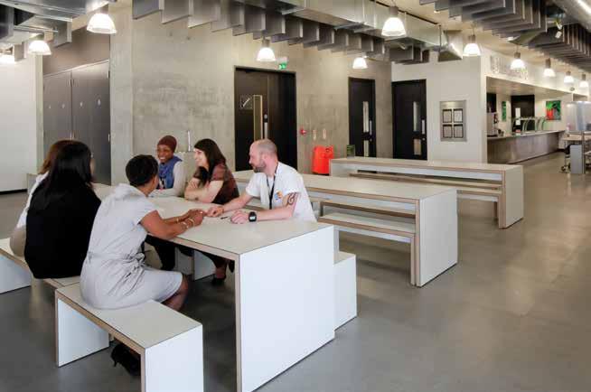 The building is filled with state-of-theart facilities, including photography studios and a dark room, TV and radio studios, a dance studio and a purpose-built theatre. In addition to this the college also has a range of Mac editing suites, a Sport England standard sports hall and an aeroplane cabin simulation training room for travel and tourism courses.