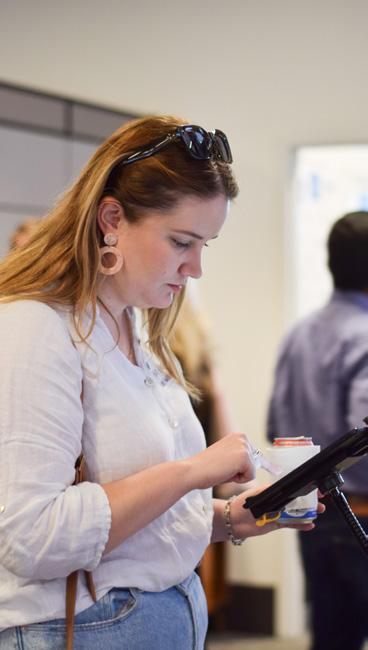 Board President, Tifinie Capehart, and Deputy Mayor Haywood tour the parklets, enjoying Dryden + JE Dunn’s parklet (right). Community members interact with the prompts at ASD|SKY and Smith Gee Studio’s parklets (below). ASD|SKY asked participants, “do you think houseless individuals below in our public spaces?”
