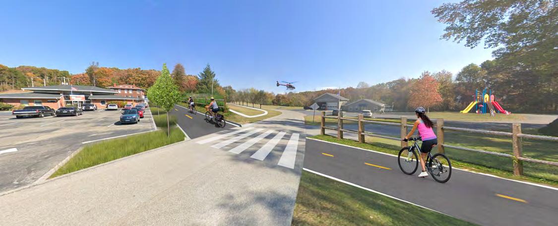 Railroad Ave currently cuts through the cuts through a large portion of the park space and then meets up with Main St. This layout cuts the current path of the Mountain Goat Trail and makes it so people have to cross the street to enter into the park.