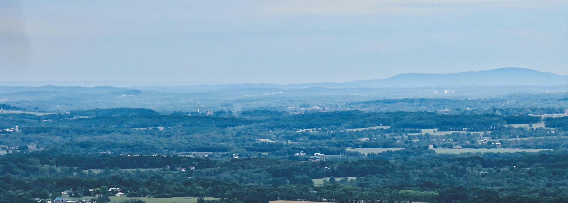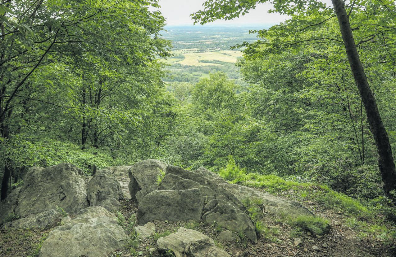 Two current views toward Gettysburg from Indian Overlook above Mount St. Mary’s University. The 1863 battlefield is more than 10 miles away. The climb to the spot in Emmitsburg, Md., is a rough one through woods and over rocks following a trail marked on the trees. It takes more than an hour and a half or more for inexperienced climbers. At age 83, the author had little trouble going up, but won’t talk about the trip back! Fortunately, he was accompanied by younger Civil War enthusiasts Bill Kamenjar and Ben Trittipoe. This is a spot that every Civil War and Gettysburg scholar should visit if they can. Don’t try it alone. Photos by Bill Kamenjar.