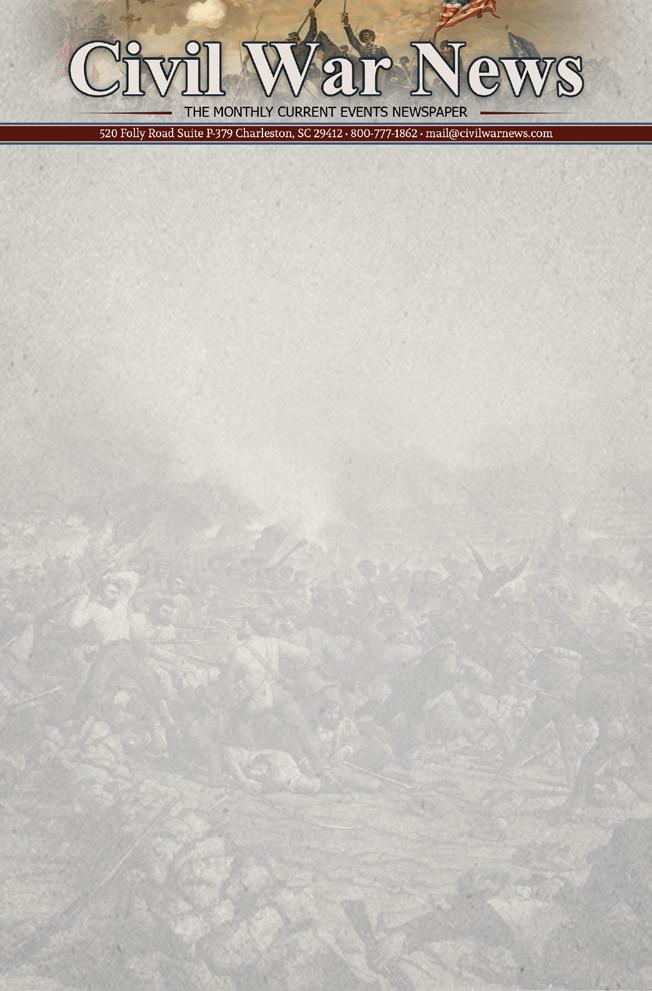 Civil War News (ISSN: 1053-1181) Copyright © 2020 by Historical Publications LLC is published 12 times per year by Historical Publications LLC, 520 Folly Road, Suite 25 PMB 379, Charleston, SC 29412. Monthly. Business and Editorial Offices: 520 Folly Road, Suite 25 PMB 379, Charleston, SC 29412, Accounting and Circulation