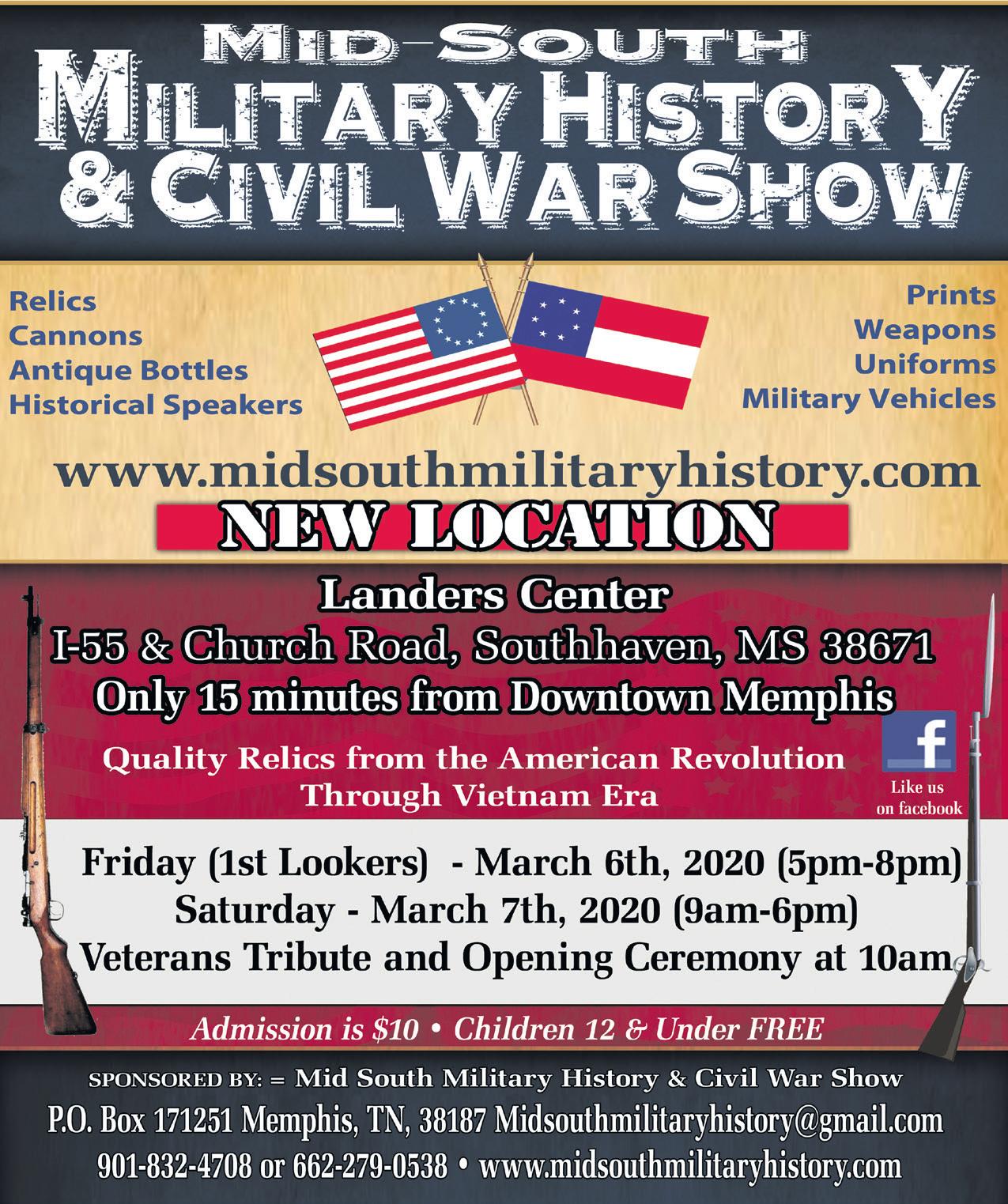 MK Shows presents the 34th Annual Middle Tennessee Civil War Show and Sale at the Williamson County Ag Expo Park, 4215 Long Lane in Franklin. The nation’s largest Civil War show, featuring 1,000 tables of antique weapons, artifacts and memorabilia from top dealers and collectors around the country and encompassing all eras of military history from the Revolutionary War through World War II. Appraisers are always on hand to help you identify and value your military collectibles at no cost. Hours are 9-5 on Sat., 9-3 on Sun., parking is free and admission is only $10/adults and children 12 & under/free. For more information; www.MKShows.com or Mike@MKShows.com.