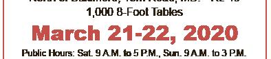 Sat. 10 a.m. - 5 p.m., Sun. 9 a.m. – 2 p.m. Eisenhower Hotel & Conference Center Allstar Expo Complex, 2638 Emmitsburg Road, Gettysburg. The Gettysburg Battlefield Preservation Association’s Artifact and Collector’s Show features more than 200 vendors and over 300 tables of artifacts, swords, firearms, correspondence, books, photographs, documents and much more. Daily admission: Adults: $8. Children 12 and under free. Vendors contact: bsynnamon@gmail.com or call 717-334-2350. For more information visit www.uniondb.com or www.gbpa.org. Email: info@gbpa.org.