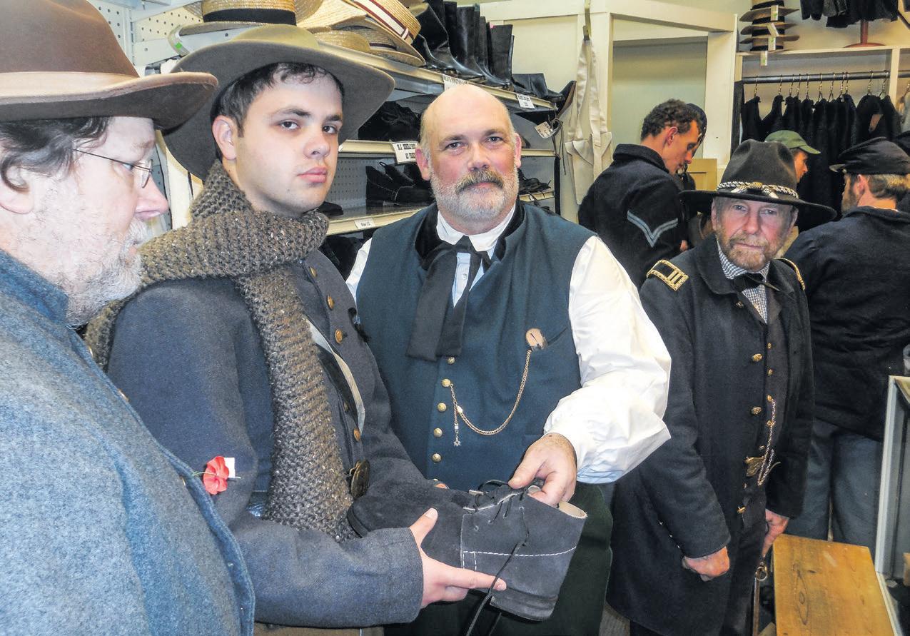 Mike at the Regimental Quartermaster, attempting to convince two confederates soldiers, that the shoes are not free.