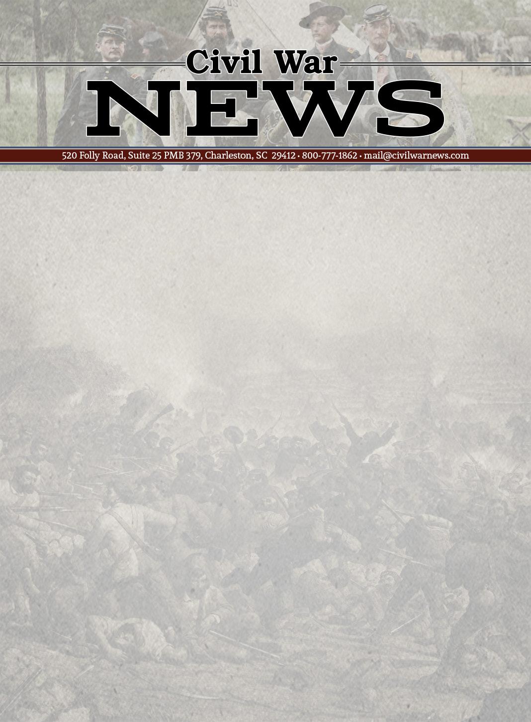 Civil War News (ISSN: 1053-1181) Copyright © 2023 by Historical Publications LLC is published 12 times per year by Historical Publications LLC, 520 Folly Road, Suite 25 PMB 379, Charleston, SC 29412. Monthly. Business and Editorial Offices: 520 Folly Road, Suite 25 PMB 379, Charleston, SC 29412, Accounting and Circulation