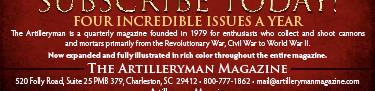 New 392 page, full-color book, Civil War Artillery Projectiles –The Half Shell Book. For more information and how to order visit the website www. ArtillerymanMagazine.com or call 800-777-1862. $89.95 + $8 media mail for the standard edition.