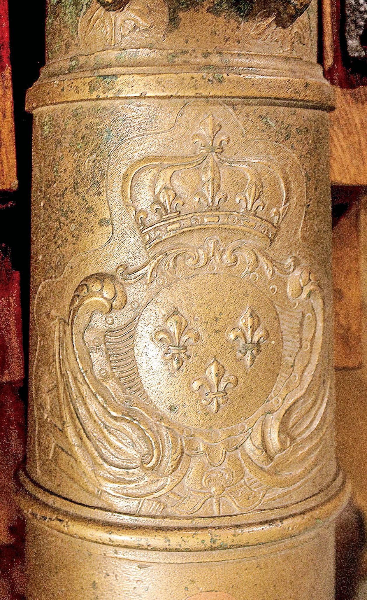 Above and left: Carronades with twoheaded eagles cast behind the center band.