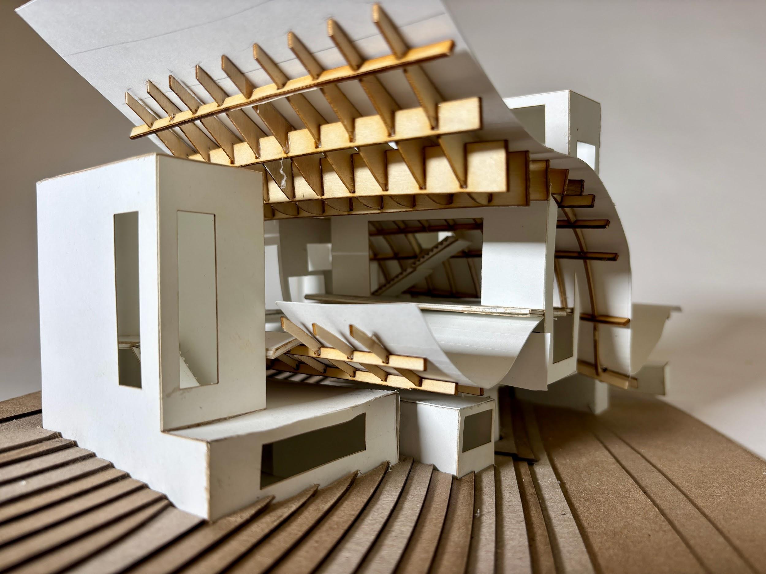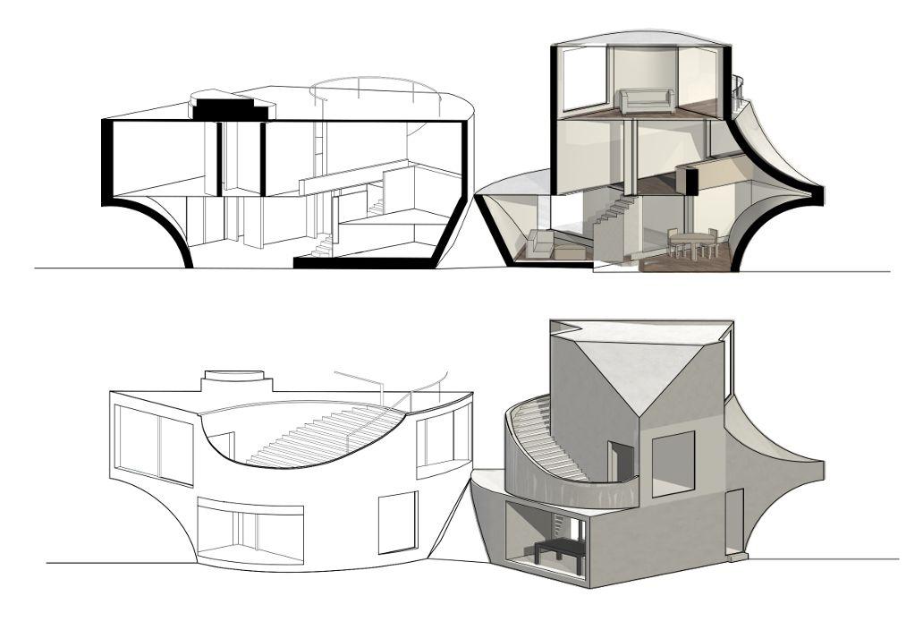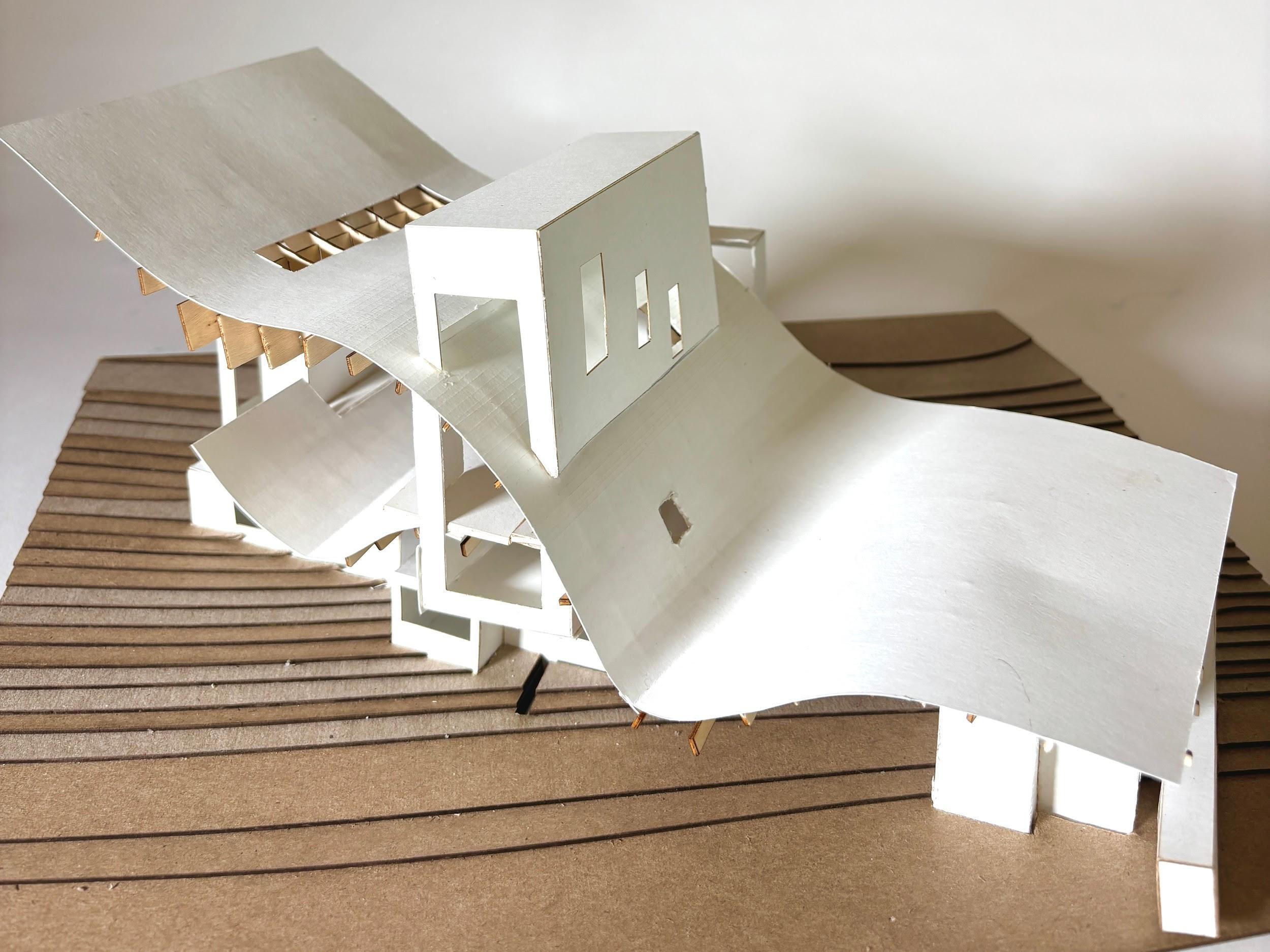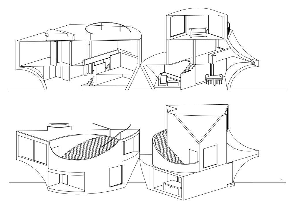 Derived from the View House by Johnston Marklee, this building was created to serve as a comfortable house for four. Sitting next to the View House, the duplex is designed with intentional curved domes and angles derived from the original to make designated spaces for the family.