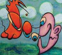 Signe and Genna Grushovenko are a husband-and-wife collaborative team who have been painting together for more than two decades. Their figurative paintings are inspired by found photographs from the 1950s-1970s. Genna first lays down a vibrant, abstract underpainting upon which Signe builds a representational image. Their themes center around community, human connection and the beauty of small, everyday moments.
