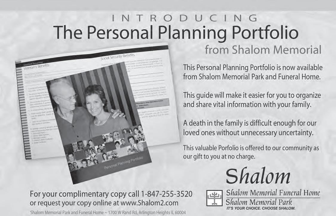 The Sandwich Club - Half Page AdSelected The Alzheimer’s Foundation Chicagoland Affiliate Office Advanced Alzheimer’s, Parkinson’s, Dementia & Memory Care “When mom had a problem the owners went out at 10:30 at night. They really care. I did a lot of homework & they have the best reputation. They’re as top notch as you can get.” DL Ranked One of the Top Home Care Agencies in America the last 5 Years Call us at 847-564-7500 rtucker@seniorhelpers.com www.seniorhelpers.com Licensed Bonded Insured Shalom Memorial Park - Half Page Ad -