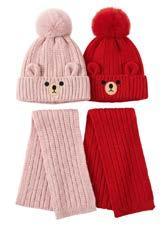 Set de gorro y bufanda tejido infantil con orejitas de oso - varios colores 23x18cm / 10x54cm HU0623 $17590