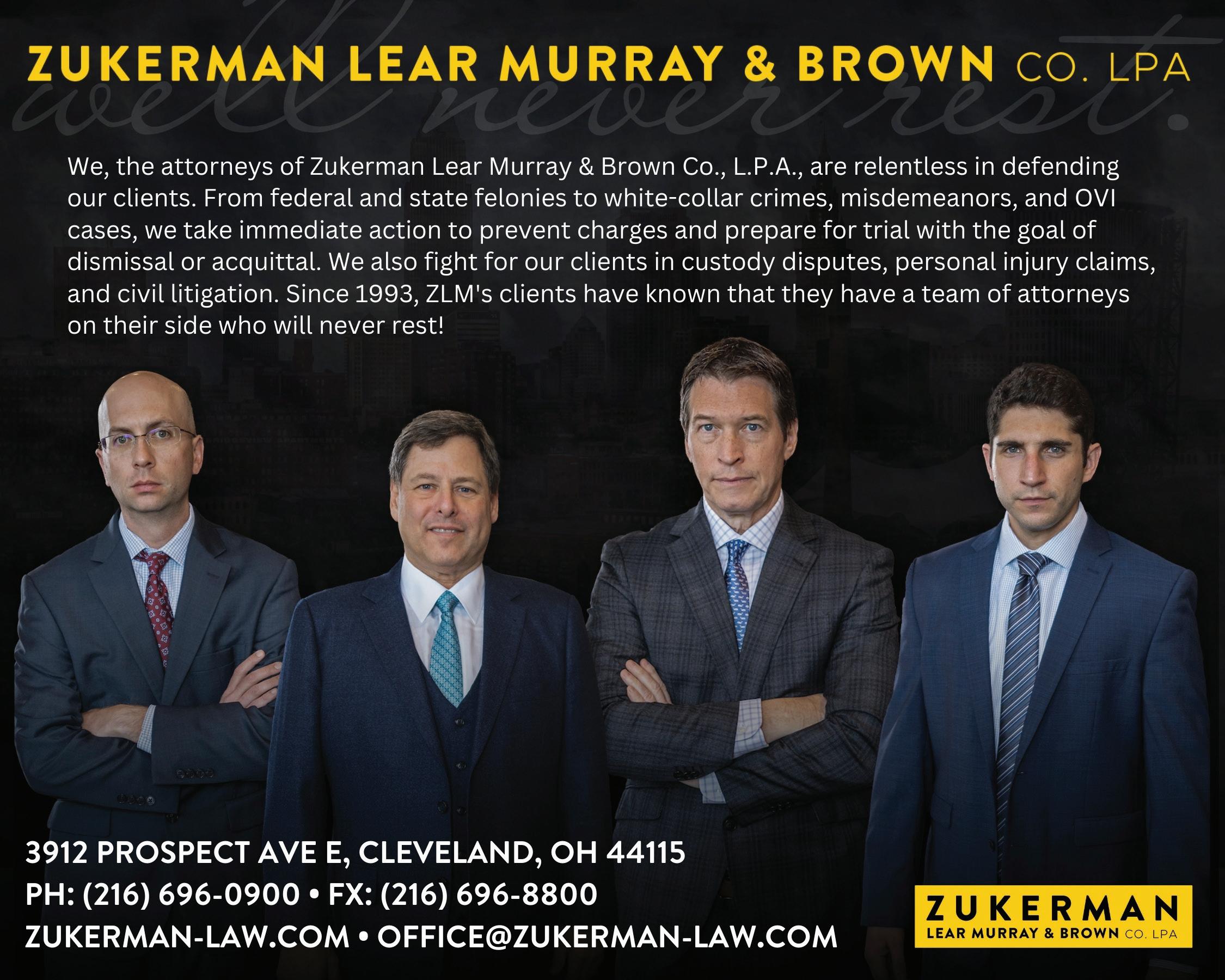 We, the attorneys of Zukerman Lear Murray & Brown Co., L.P.A., are relentless in defending our clients. From federal and state felonies to white-collar crimes, misdemeanors, and OVI cases, we take immediate action to prevent charges and prepare for trial with the goal of dismissal or acquittal. We also fight for our clients in custody disputes, personal injury claims, and civil litigation. Since 1993, ZLM's clients have known that they have a team of attorneys on their side who will never rest!