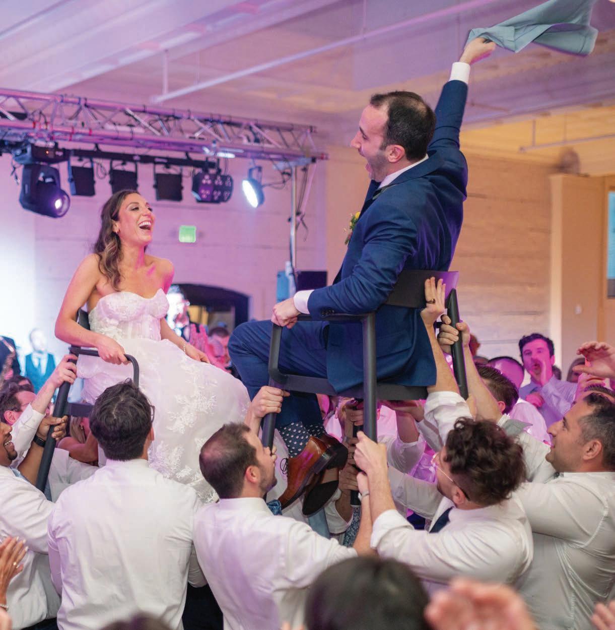 “The hora was one of the highlights of our wedding. Our families led the charge in getting everyone on the dance oor, and it was an amazing experience to be lifted up by so many of our friends and relatives. It seemed like everyone was having a blast. There were so many smiles across the whole dance oor.”