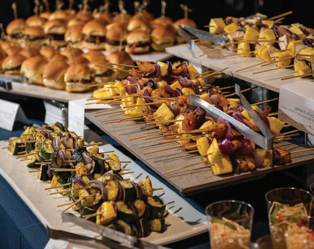 “This is followed by the passed hors d’oeuvres,” she says. “We then move into the salad course and wine selections, followed by the three entrées that will be o ered. We nish with our mini pastries and co ee. Our catering and pastry chefs come out and speak with the group, answer questions and give recommendations.”