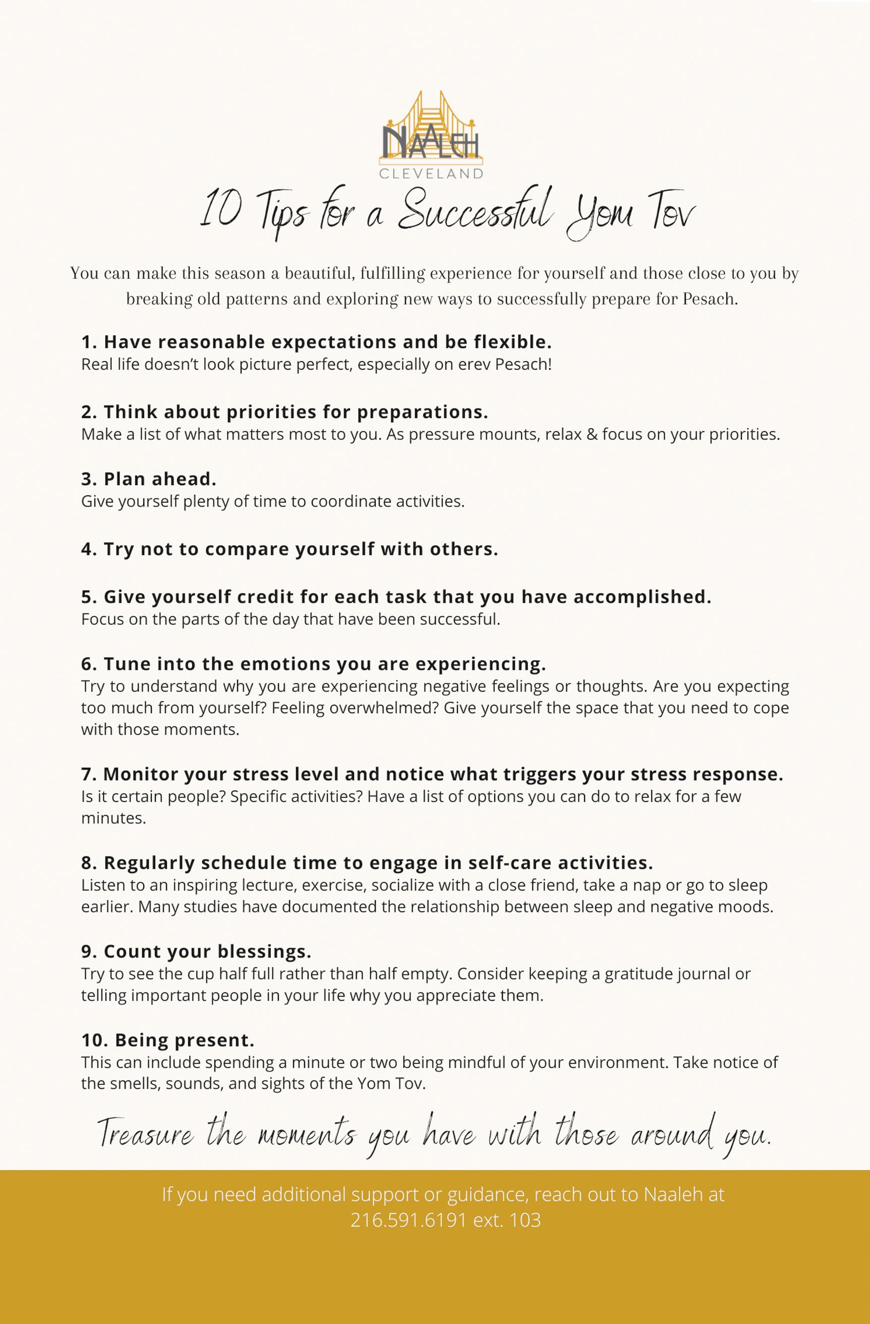 Naaleh, a nonprofit organization focused on strengthening the emotional and mental well-being of the Cleveland Jewish community, was started in 2014 to provide essential mental health services including therapy, referrals, support and support groups, advocacy and education. They help people struggling with anxiety, depression, grief, OCD, marriage conflict, abuse, addiction, postpartum challenges and other conditions.