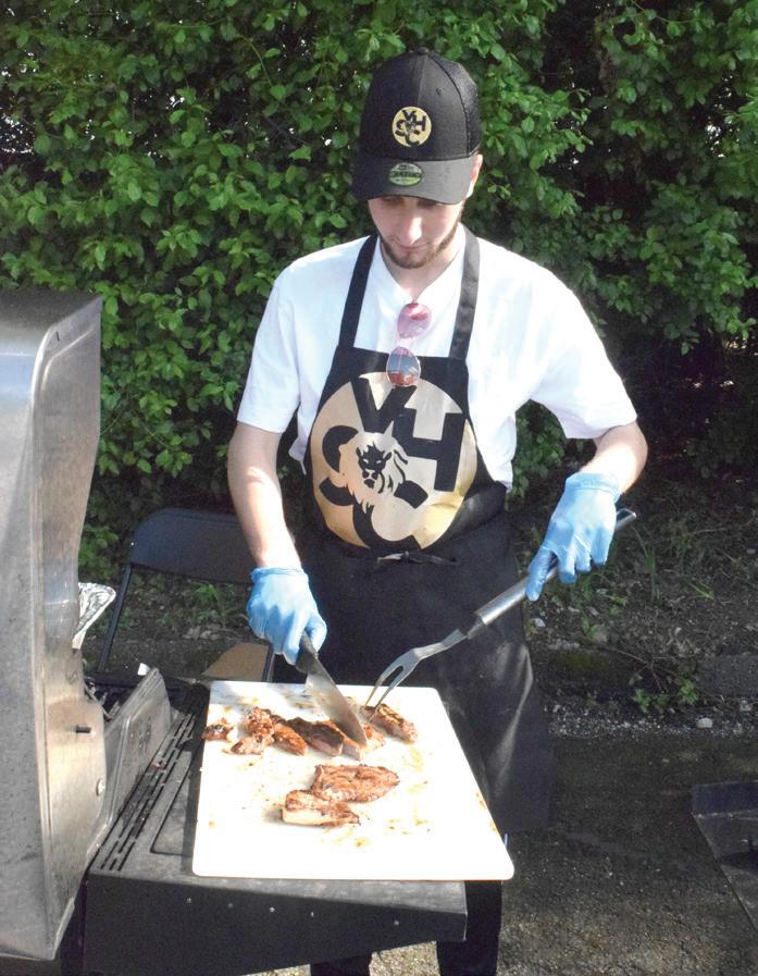 Gav Yurowitz of Houston, a student at Yeshiva High School of Cleveland, helps prepare meat served at the Lag b’Omer festivities.