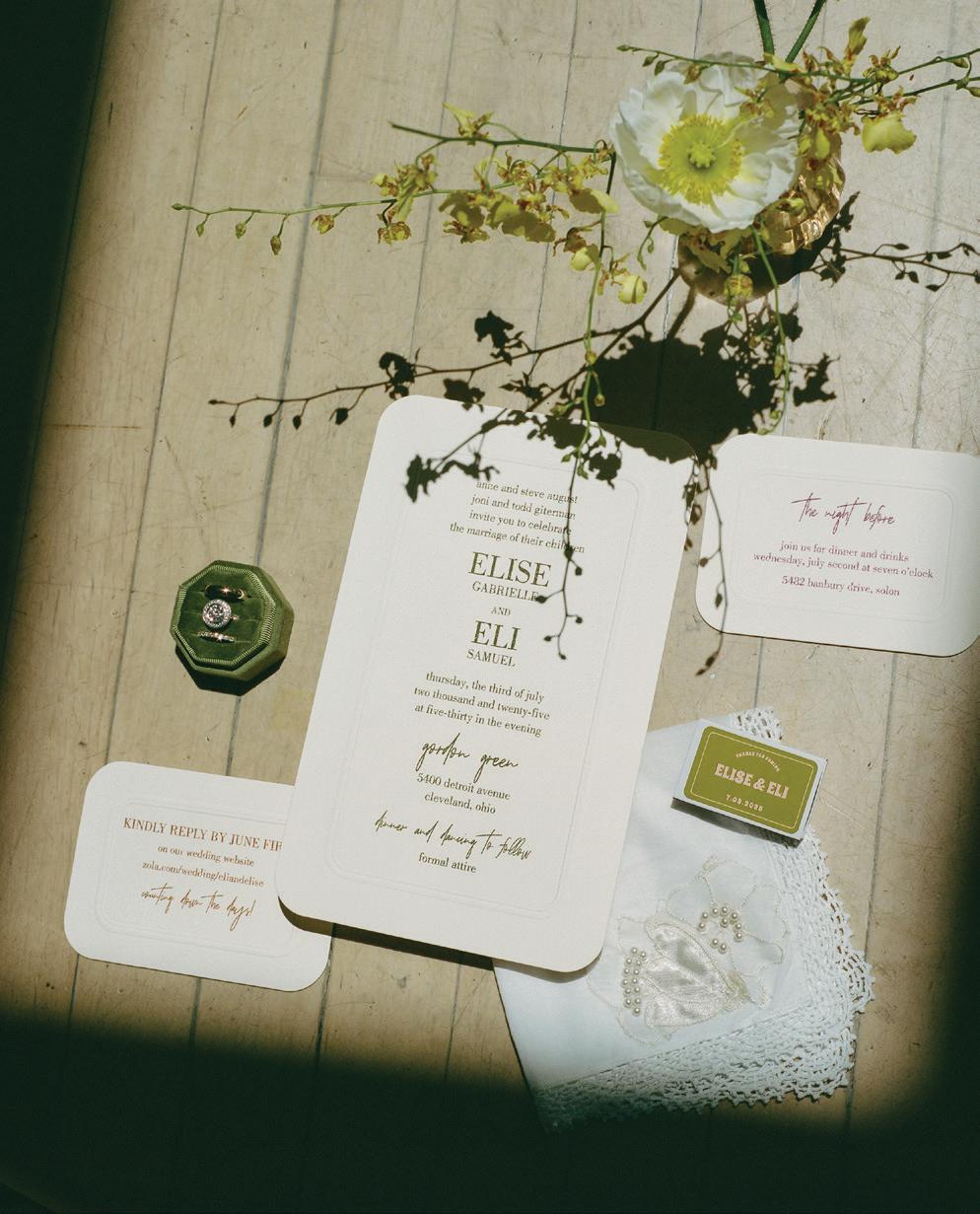 Above all, I hope this issue feels like a celebration — not just of weddings, but of the people, places, and moments that make them unforgettable. As you ip through these pages, may you be reminded of the joy in the journey, the strength of community, and the quiet, stunning beauty of fall in Northeast Ohio.