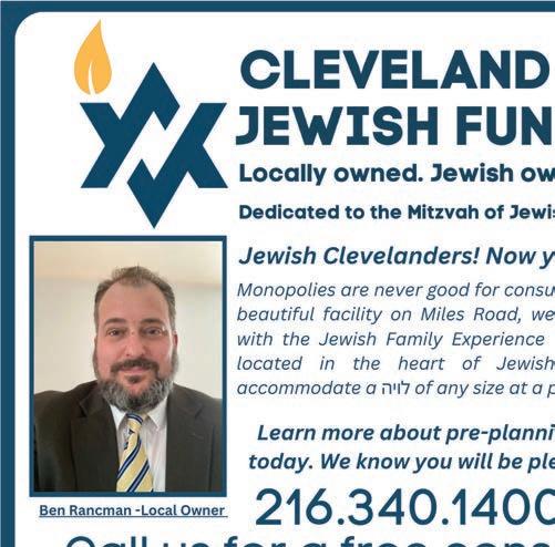 On the cover: Muriel Weber, from left, chair of the Cleveland Kosher Food Pantry advisory board, executive director Sarah Ya e Alevsky, pantry director Tamara Witkes, Tracy Thomas, o ce manager, and Lenny Glazer, warehouse manager, in front of the food pantry’s new home at 4090 Mayfield Road in South Euclid. | Submitted photo