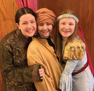 Rochel Leah Traube, from left, Tzippy Chafetz and Rivkah Esther Corbett in deluxe Purim shpiel costumes. Chaviva’s students wrote an original script based on commentaries on Megillas Esther and performed it before enjoying a Purim brunch.
