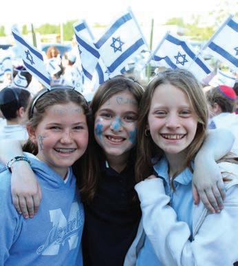 Fourth graders Orly Shoag, from left, Orli Teller and Eliana Cusner celebrate at the Yom Ha’atzmaut parade