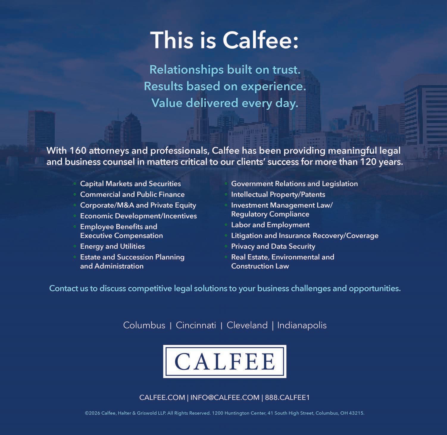 Since 1964, Kegler Brown has provided trusted counsel to some of the world’s most renowned brands from our Ohio o ces, o ering a comprehensive range of legal services across more than 100 areas of practice. keglerbrown.com