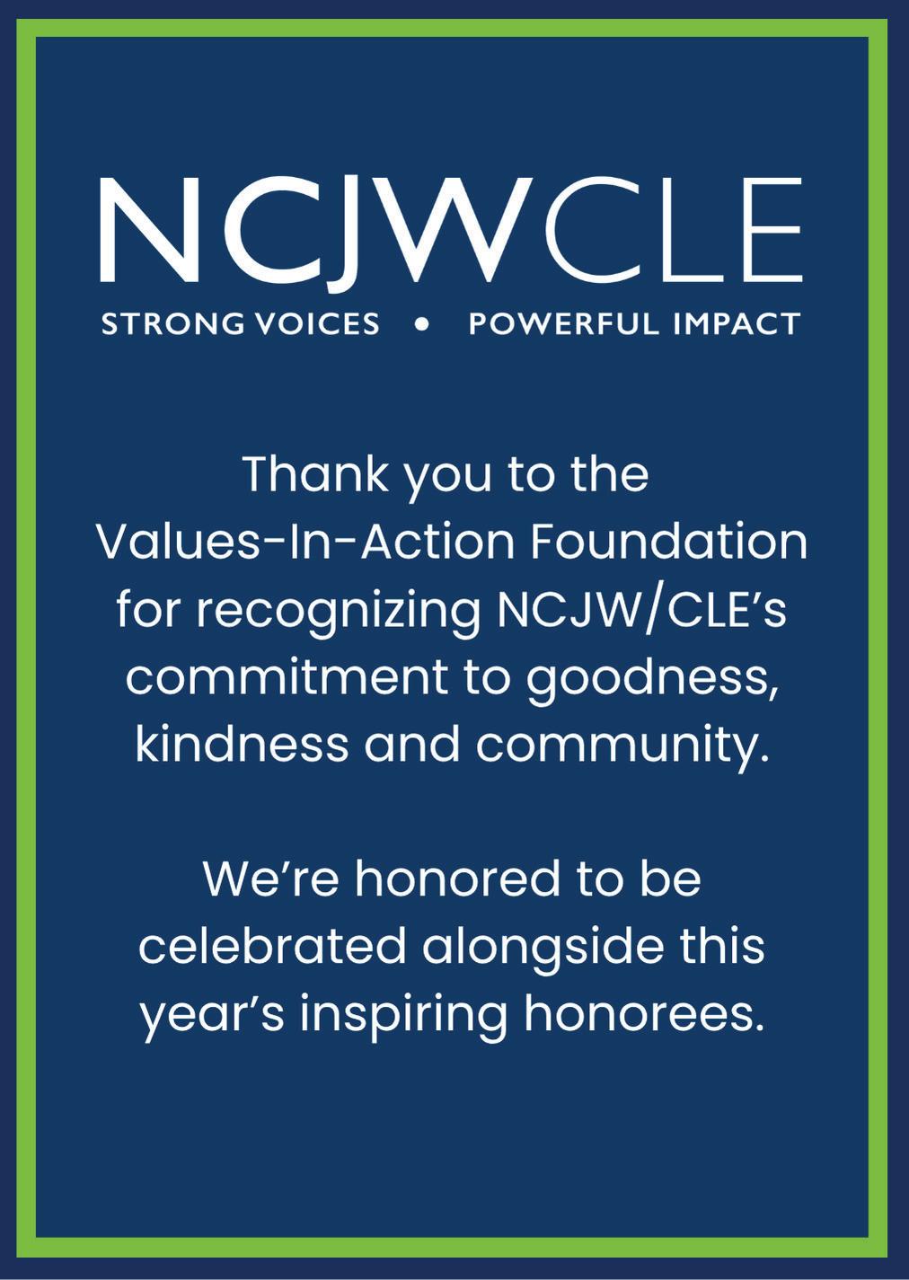 Led by Marcy and Mindi, NCJW is building nothing less than a community of care - one rooted in kindness, driven by purpose, and grounded in deep compassion. For their unwavering commitment to kindness, justice, and healing, Values-in-Action Foundation proudly honors the National Council of Jewish Women – Cleveland Section with the Sam Miller Goodness Award.