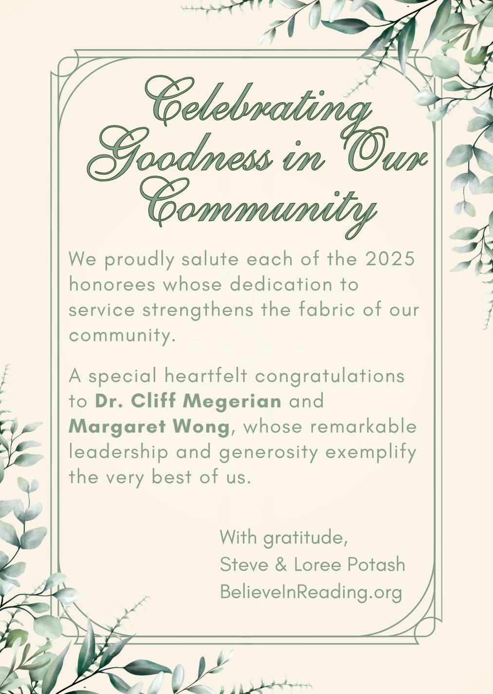 Thank you to all those who made this Celebration of Goodness possible. Your kindness and generosity are much appreciated.