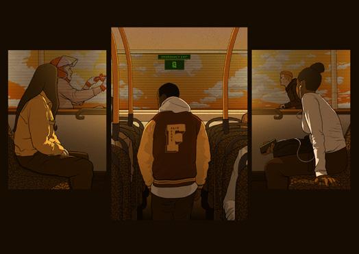 Via kleine, persoonlijke verhalen snijdt Jottum ook onderwerpen aan die reflecteren op de sa menleving. ‘‘Ik heb me laten inspireren door de tijd waarin we leven. Ik denk dat heel veel jonge men sen zoals ik - de wat meer bevoorrechte genera tie - zich heel erg bewust zijn van hun privileges. Ik heb het idee dat veel mensen worstelen met hun positie ten aanzien van gemarginaliseerde groepen. Bijvoorbeeld de Black Lives Matter-pro testen op Instagram met het zwarte vierkant. Aan de ene kant laat je zien dat je bewust bent. Wat natuurlijk goed is. Maar het lost niet écht iets op. Ik denk dat heel veel mensen worstelen met hoe ze het nou goed kunnen doen.’’