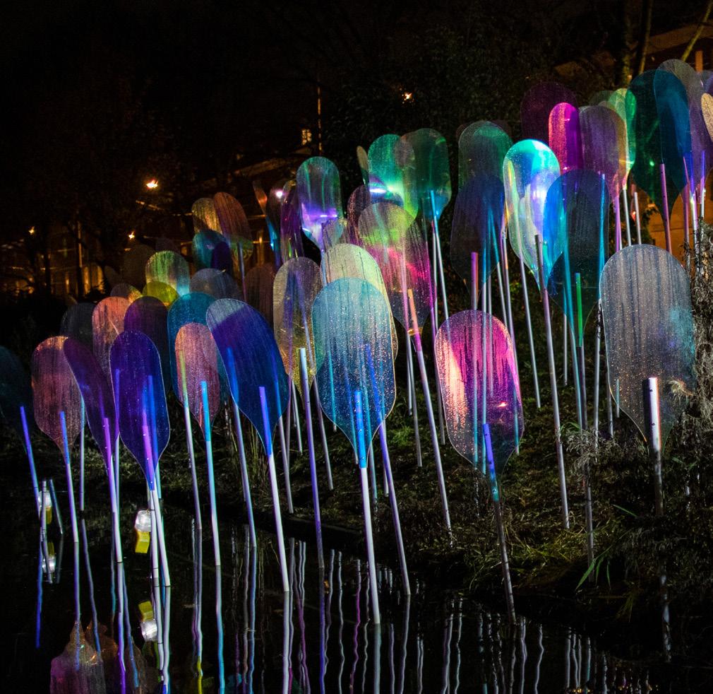 de juiste volgorde kan worden geplaatst, het een mooi geheel wordt en de kunstwerken een goed verhaal vertellen aan het publiek. Als laatste stap werk ik nauw samen met het installatieteam om de kunstwerken op de juiste locaties te plaatsen. Alles doet ertoe: de timing van het kunstwerk, de kleur en de intensiteit van het licht, details van de constructie en hoe het kunstwerk zich verhoudt tot de specifieke locatie. Dit laatste gebeurt drie weken voor de opening. Dat is een erg drukke periode.