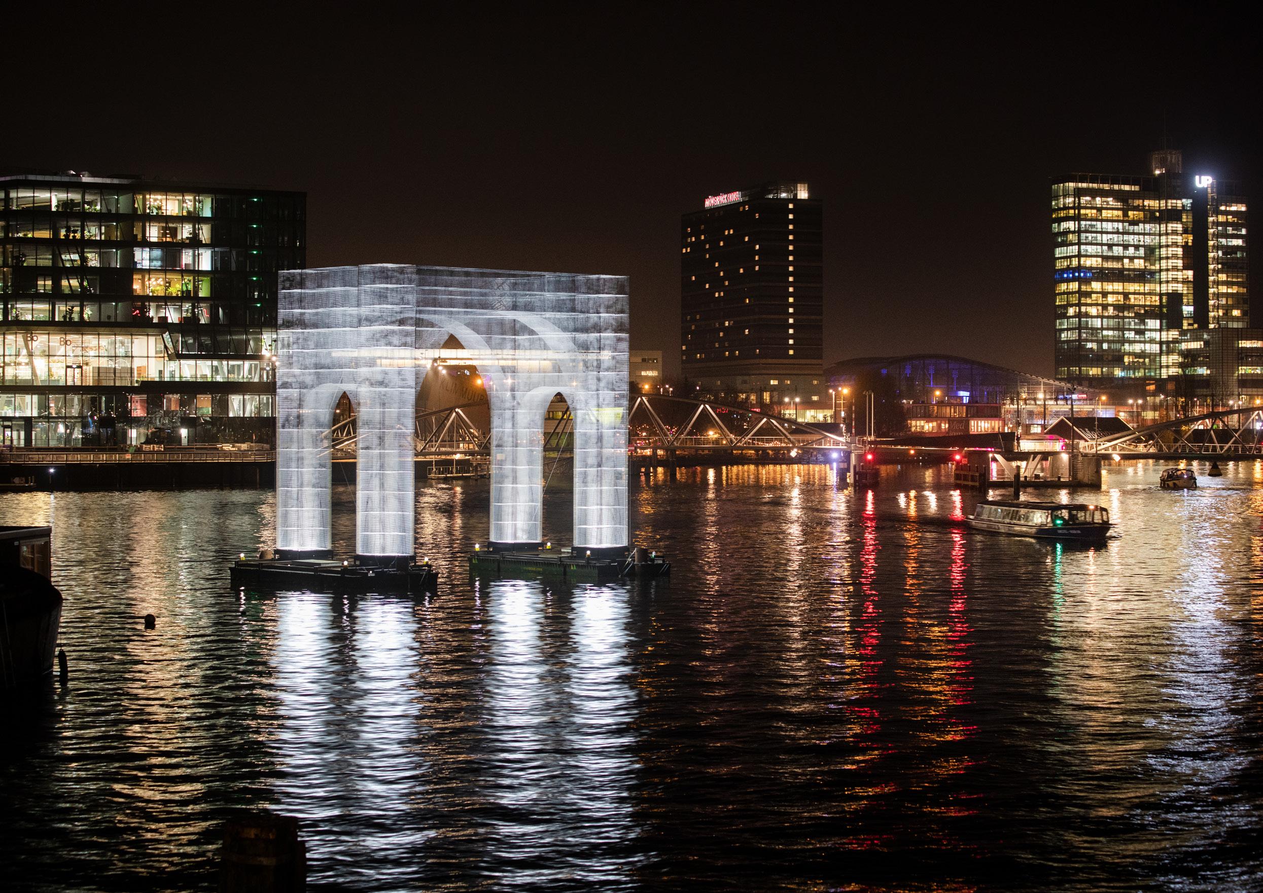 In 2018, toen ik nog geen curator was, zag ik dit werk voor het eerst in Washington. Ik moest hier meteen aan denken als openingsstuk. Dit keer niet op de grond, maar juist op het water! Het is op een enorme schaal gebouwd, zodat de boot er onderdoor kan varen. Dat idee leek me fantastisch. Als een soort Arc de Triomphe en tegelijk een referentie naar Itsukushima Shrine’s bekende ‘floating’ Torii Gate. Een poort naar een andere wereld. Het was een enorm uitdagend kunstwerk vanwege de schaal en de locatie, maar ons toegewijde fabricage- en constructieteam heeft het mogelijk gemaakt, waarvoor ik erg dankbaar ben.