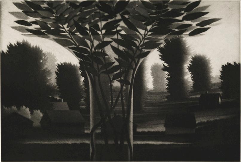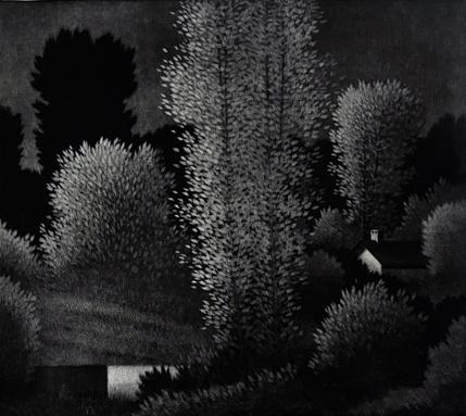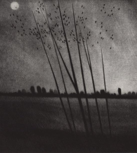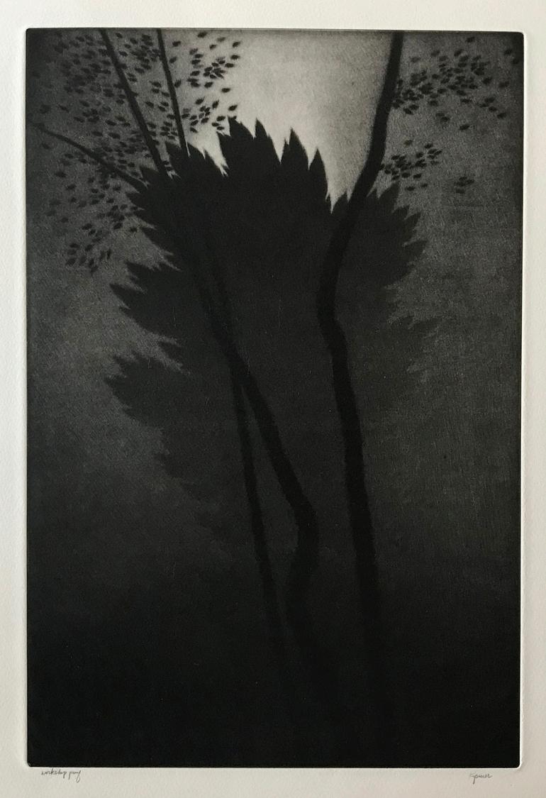 Tall trees at night (Trial proof from the variant edition of 6 in green), 2009 Mezzotint