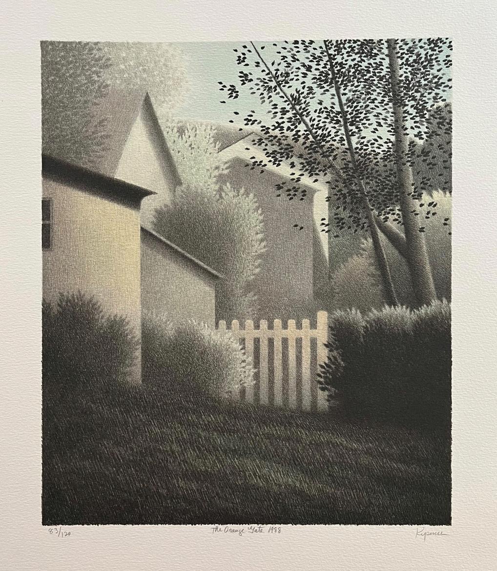 It is important to state that while Kipniss’s color choices are soft, they are still strong when properly preserved over time This is of particular note when looking at color lithographs that have entered the secondary market, as opposed to the pristine examples presented in this exhibition, which have been retained by the artist and cared for meticulously Coming to CK Contemporary directly from Kipniss’s studio, pieces like The orange gate, 1988, or Pale hedges, 1988, retain all the nuances and tonal shifts that Kipniss intended nearly forty years ago when these were printed