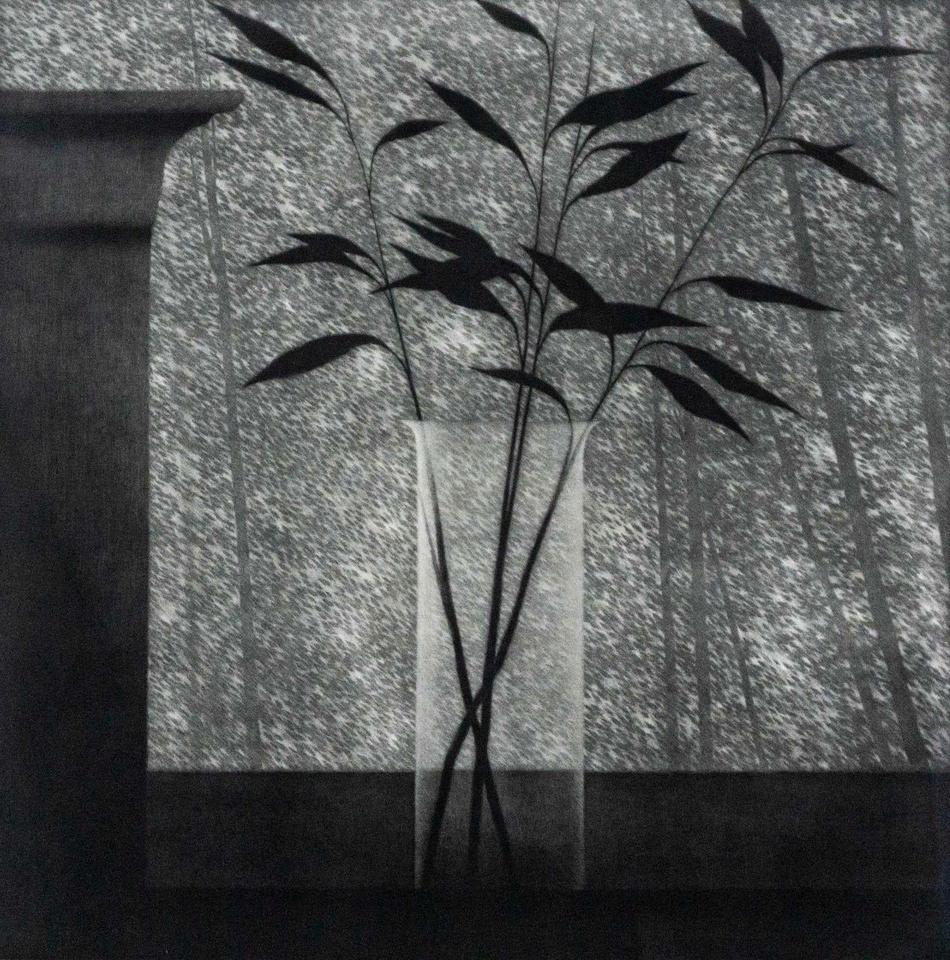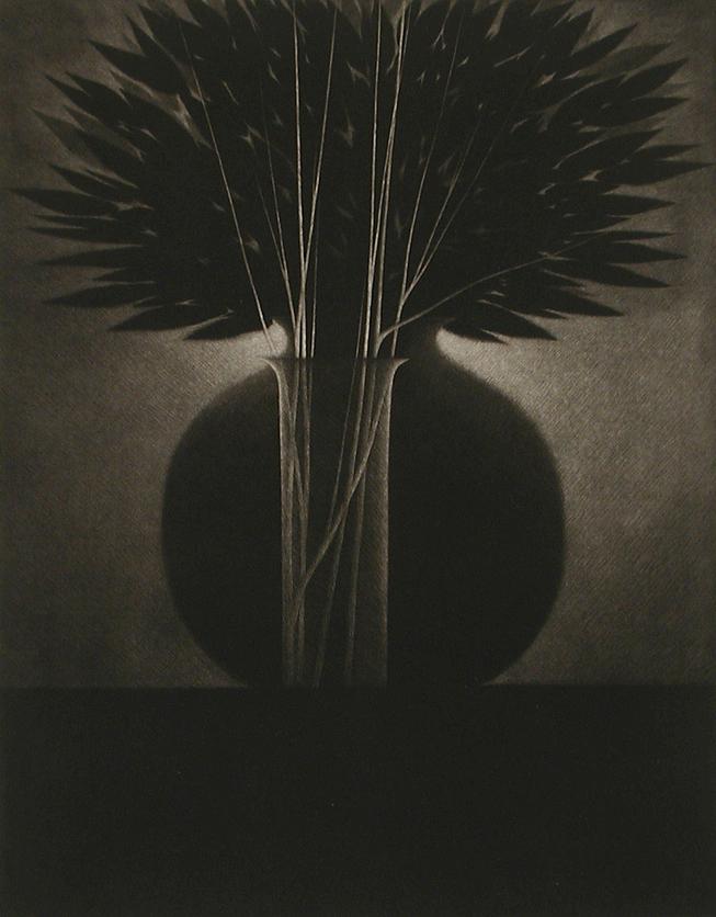 Vase w/ small branches, Mezzotint, 1999