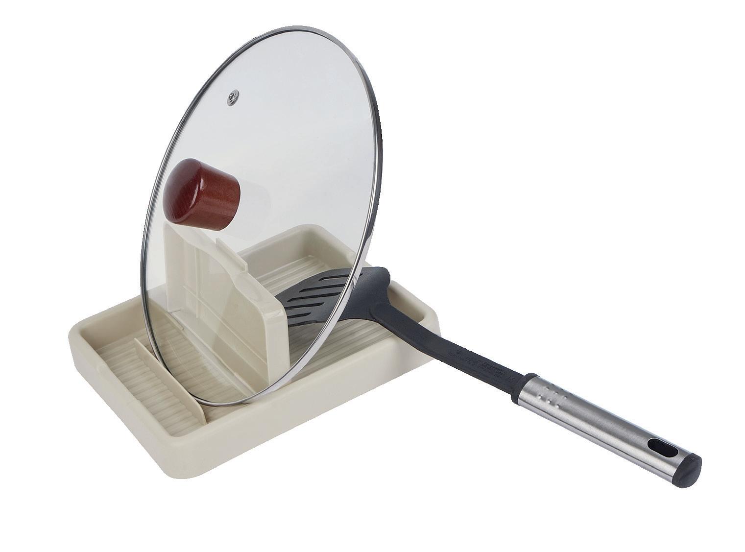 Mantén tu cocina limpia y sin goteos con nuestro soporte para utensilios. ¡Puede contener cucharas, tapas de olla, espátulas y también tablas de cortar!. Organiza tu área para cocinar sin esfuerzo.