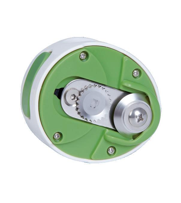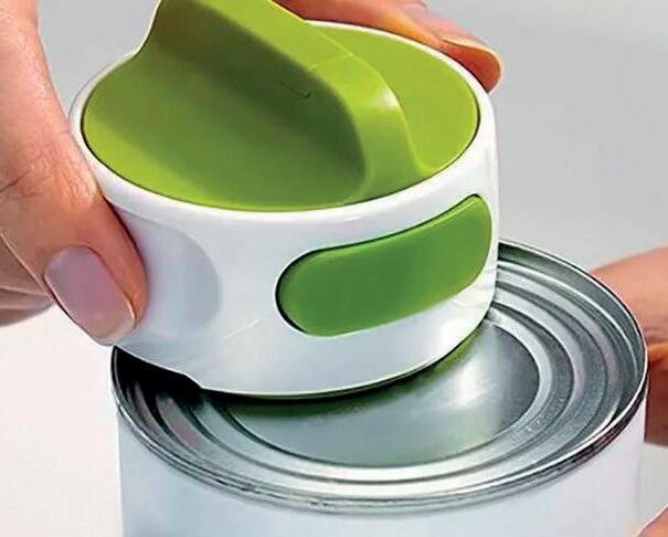 Abrelatas compacto ahorrador de espacio con mecanismo "gira fácil" para cortar la tapa y botón "easy-press" de desbloqueo remueve la tapa.