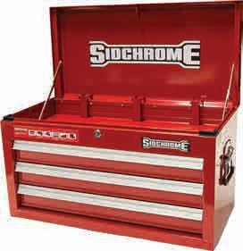 Always Wear Eye Protection 7 Find us on   B UI LT TO LAST A LIF E TIM E TOOL KITS Top Chests & Roll Cabs Sidchrome Tool Kits Feature Heavy Duty Metal Storage Drawer Liners 2.5mm foam matting Lid Stays Traditional stays Features • ARS - auto return ball bearing, spring loaded slides • Heavy gauge steel for durability and strength • Polyester/epoxy powder coat • U.V resistant • Comfortable epoxy coated side handle • Drawer liners • Rolled edge drawers for safety & strength • Wide grip drawer handles • 100% drawer access Gauge Steel Approx. 0.8-1.2mm Drawer Slides Auto return ball bearing spring-loaded slides Structural Design Fully welded, rolled edges, and reinforced sides Rolled Edges Rolled drawer edges prevent from flexing Work Mat Heavy duty rubber work mat Casters Heavy duty polypropylene 5”x2” lockable