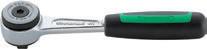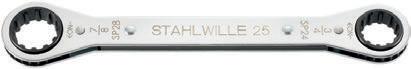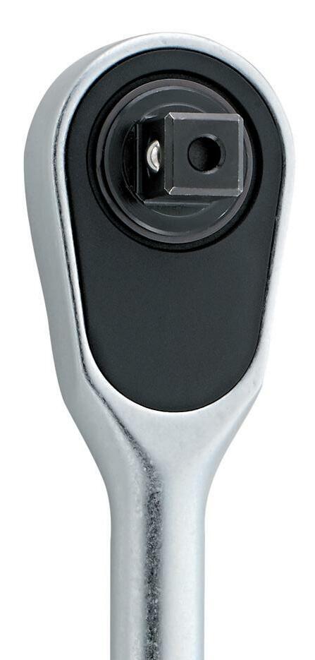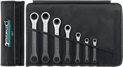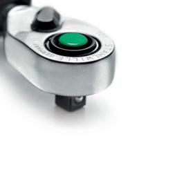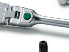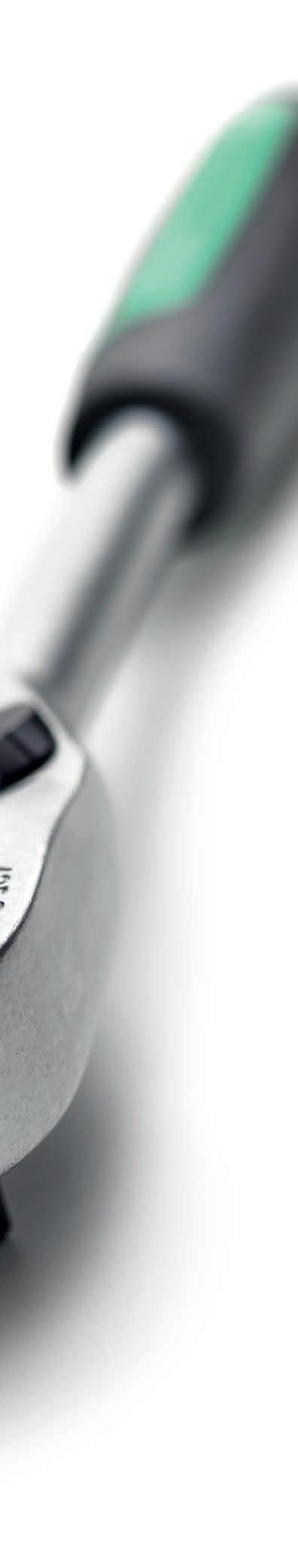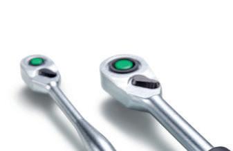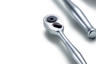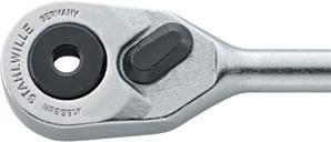 STAHLWILLE ne tooth ratchets have a specially developed, perfectly balanced mechanism with 80 teeth, ensuring maximum load capacity and, at the same time, excellent durability. With STAHLWILLE ne-tooth ratchets, no less than eight teeth engage at once, which provides smooth working action. The tight ratchet angle of only 4.5° enables ef cient working in con ned spaces