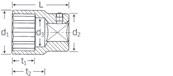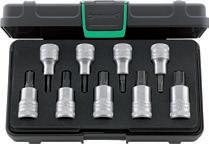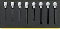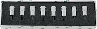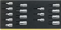 Socket, spline-drive for Socket Head Screw, hexagon for Socket Head Screw, hexagon with guide pin for Phillips-Recessed head Screws Phillips-Recess®, registered trademark of Phillips Screw Company for POZIDRIV/SUPADRIV Screws POZIDRIV/SUPADRIV®, registered trademark of European Industrial Services Ltd.