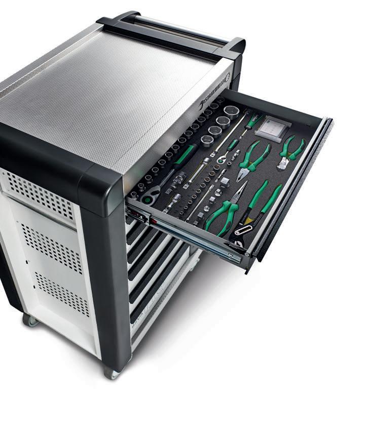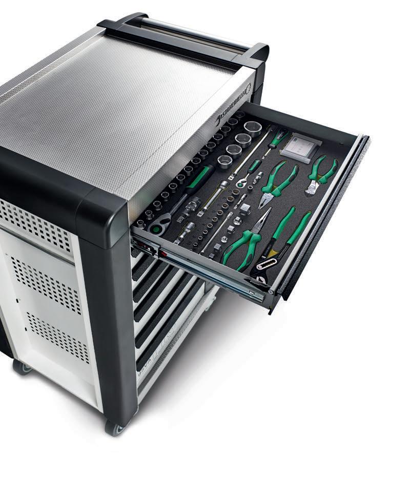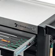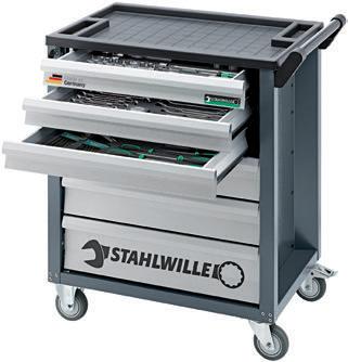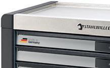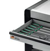 All the drawers can be fully extended. Use of STAHLWILLE’s standard TCS inlays or the variable drawer dividers ensures a clear overview and easy tool removal.