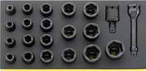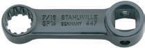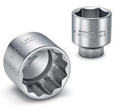STAHLWILLE spanners and sockets have the sophisticated AS-Drive pro le. Thanks to this pro le, the forces applied are transferred ideally to the ats of nuts & bolts. This allows even large forces to be applied without causing damage to the bolt and nut. STAHLWILLE HPQ® socket provide the same reliability. Since they are made of tough, high-grade steel, they have extremely thin walls and are nevertheless extremely resilient.