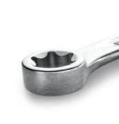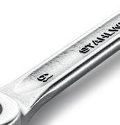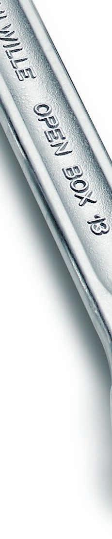 The double T-pro le used for the STAHLWILLE open-jaw and ring spanners saves material where it is not needed and guarantees two things at once: peak dimensional stability and extremely low weight, whichever spanner size you pick up. As a result, tool-kits from STAHLWILLE weigh considerably less. But that is not all: the double T-pro le from STAHLWILLE ts snugly in the hand, allows fatiguefree working and can be gripped comfortably and safely. This also increases user safety.