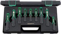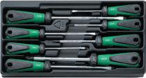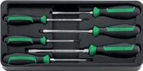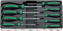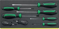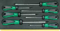 for Trisquare Socket Head Screws for Inside TORX® Screws for Inside TORX® Screws with hollow drive tip for Inside TORX PLUS® Screws for 5-star screws for Outside TORX® Screws registered trademark of Fa. Acument Intellectual Properties, LLC, Rockford, USA STAHLWILLE holds the Manufacturing Licence for TORX® Tools for Spline Socket Head Screws Ribe-CV®, registered trademark of Richard Bergner GmbH & Co. for Slotted Head Screws for TRI-WING® Screws, registered trademark of Phillips Screw Company for TORQ-SET® Screws, registered trademark of Phillips Screw Company Diameter in mm Anti-Slip-drive High-Performance-Quality Scale Range Scale Division Weight Standard Pack (pieces) full flush cutting semi flush cutting standard bevel Safety insulated as per IEC 900 – AC 1000 V new items