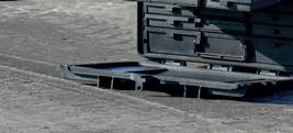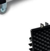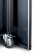 Safe. Oil and acid resistant castors (O 100 mm) with one parking brake.