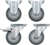 1 4 ball-bearing mounted, smooth-running swivelling wheels (O 125 mm)