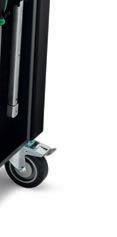 1 oil and acid resistant low-friction wheels (O 125 mm) with carpet protection to prevent ingress of dirt and fibres into bearings, with two parking brakes