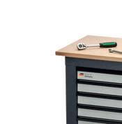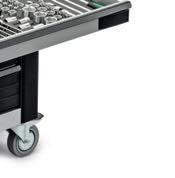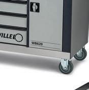 - topple-proof - it is not possible to pull out more than one drawer at a time 1 large worktop with multiplex beechwood worktop, 1150 x 500 mm 1 ribbed protective base strip made of stainless steel 1 oil and acid resistant wheels (O 125 mm) with carpet protection to prevent ingress of dirt and fibres into bearings, with two parking brakes
