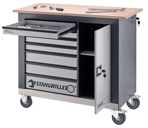 The sturdy construction, multiplex worktop (115 x 50 cm) and such sophisticated features as the protective base strip made of stainless steel ensure the legendary »made in Germany« durability that STAHLWILLE is famous for.