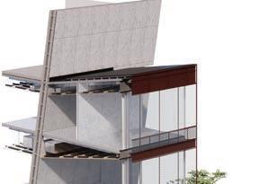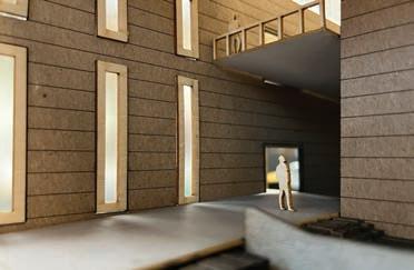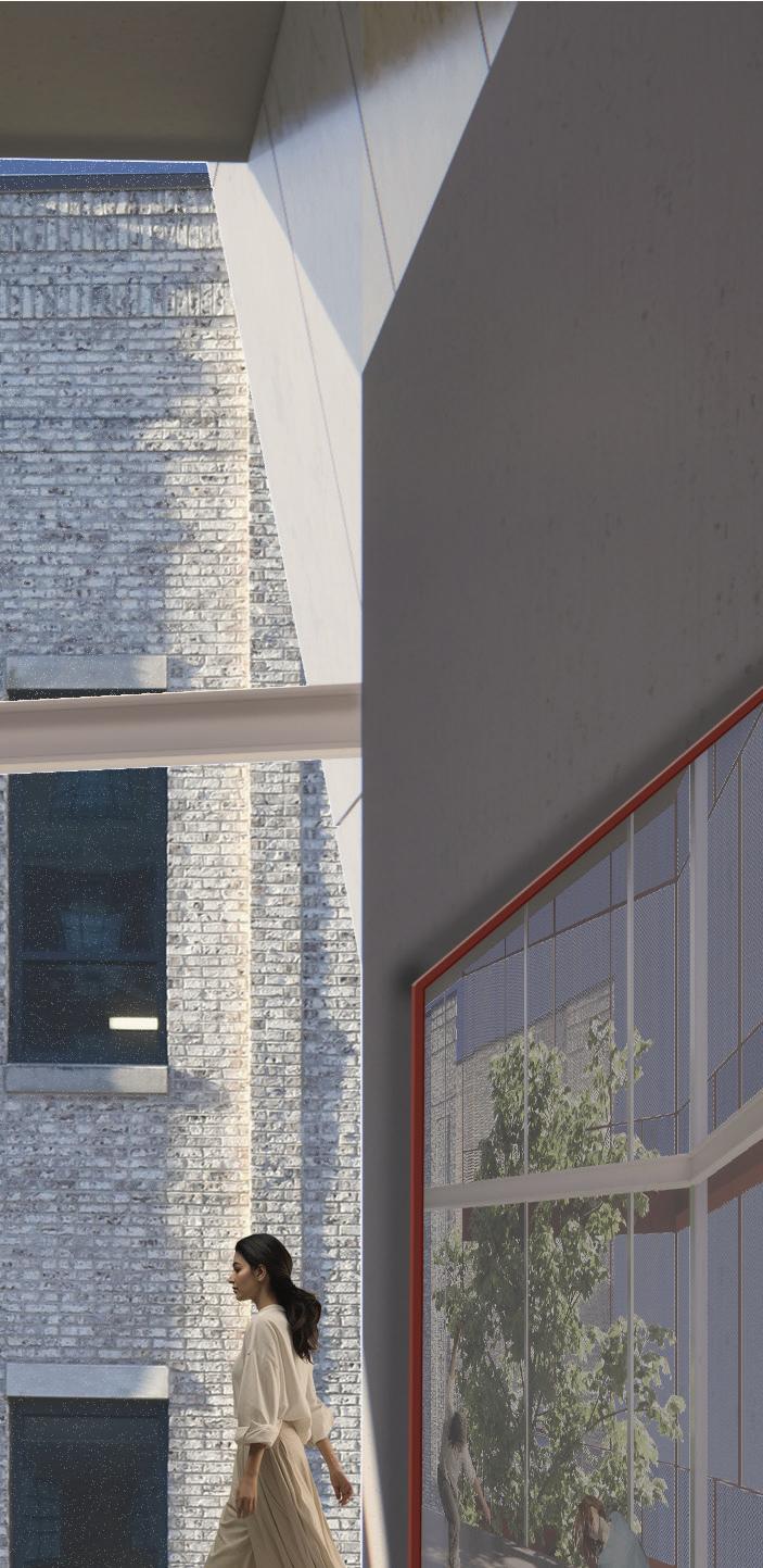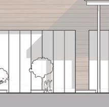 Contextual façades fold backwards to express depth in allowance of daylighting into this mass timber space.
